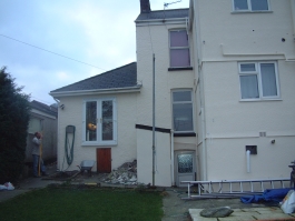 Completed with decking and a stairway to the garden area. |