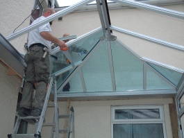 The strength of the structure box gutter shown during glazing of the roof. |